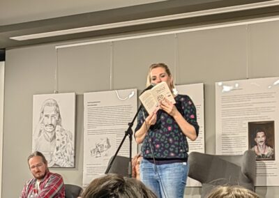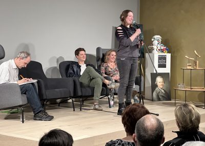 Der Kamenzer Autor Lukas Rietzschel las aus seinem Roman „Mit der Faust in die Welt schlagen“ und diskutierte mit dem Dresdner Politikwissenschaftler Prof. Dr. Werner Patzelt über die Nachwendezeit in Sachsen. Moderiert wurde die Veranstaltung von der Chefreporterin der SZ Karin Großmann.  Foto: © Wolfgang Wittchen