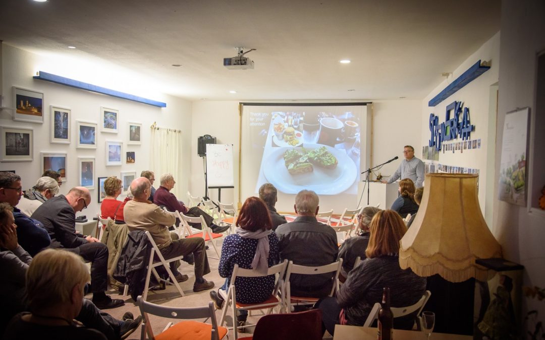 Die Gäste der Stadtwerkstatt hatten am Mittwoch Abend die Möglichkeit gemeinsam mit Sven Senkpiel über den „Tellerrand“ zu schauen. Er nahm uns im wahrsten Sinne des Wortes mit ins Silicon Valley, an diesen modernen Mythenort, die Ideenschmiede der USA.